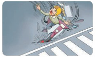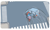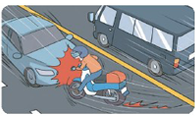 급하게 주행하던 중 갑자기 무단횡단하는 보행자를 피하려다가 이륜자동차와 함께 넘어짐