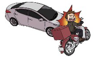 배달시간이 촉박하여 이륜자동차를 급하게 운행하던 중 교차로에서 좌회전 신호를 무시하고 직진하다가 좌회전하던 차량과 부딪힘
